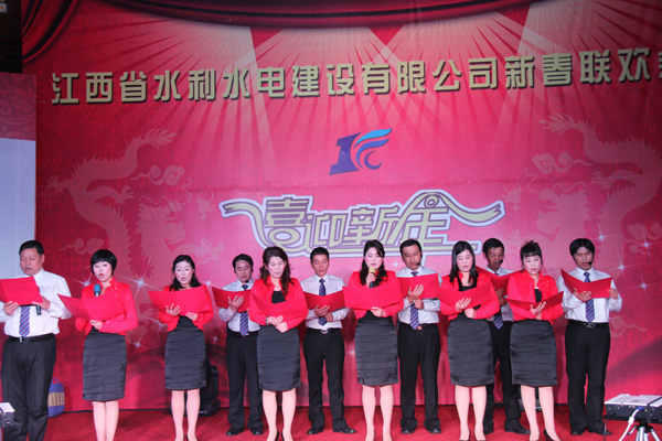 玉兔辭舊歲,瑞龍迎新春。1月18日,江西省水利水電建設(shè)有限公司2012年迎新春聯(lián)歡會(huì)在南昌市新東方大酒店隆重舉行,來(lái)自公司總部、國(guó)內(nèi)外分公司、各專(zhuān)業(yè)公司、施工項(xiàng)目部的300余名管理人員及員工歡聚一堂,共賀新春。