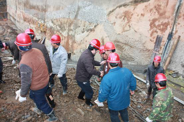 董事長(zhǎng)總經(jīng)理王元旦與施工人員一一握手并合影留念