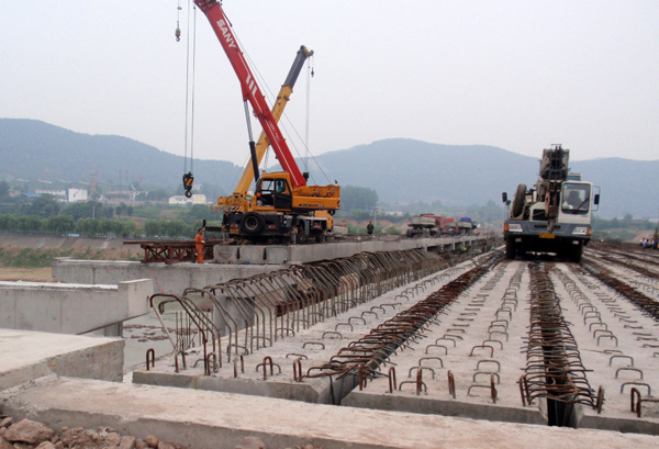 施工過程中的橋閘工程(閘壩、橋面、引道、路燈、綠化景觀等)