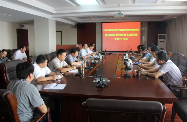 2013年7月29日,中共江西省水利水電建設有限公司委員會召開了黨的群眾路線教育實踐活動專題工作會(擴大)會,會議討論了公司教育實踐活動方案,以及對具體實施工作進行部署。公司黨委委員、高層管理人員以及教育實踐活動領導小組辦公室成員參加了會議。
