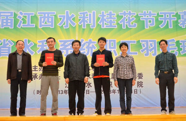2013年10月20日,以“人水和諧,共筑中國夢”為主題的第七屆江西水利桂花節(jié)暨全省首屆水利職工羽毛球賽在江西水利職業(yè)學(xué)院順利閉幕。省水利廳副廳長羅小云、副巡視員周江紅、直屬機關(guān)黨委專職副書記張伯義、江西水利職業(yè)學(xué)院院長曾亞東出席閉幕式并為運動員頒獎;閉幕式由省水利廳直屬機關(guān)工會副主席池曉虹主持。