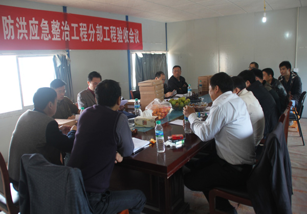 2014年11月20日上午9點,萍鄉市城市防洪應急整治工程第一次5個分部工程驗收會議在項目部2樓會議室舉行。經過現場察看、資料核查,該項目明河段和箱涵段的5個分部工程實體質量和內業資料得到各方的一致好評,順利按新規范的評定要求通過了驗收工作。