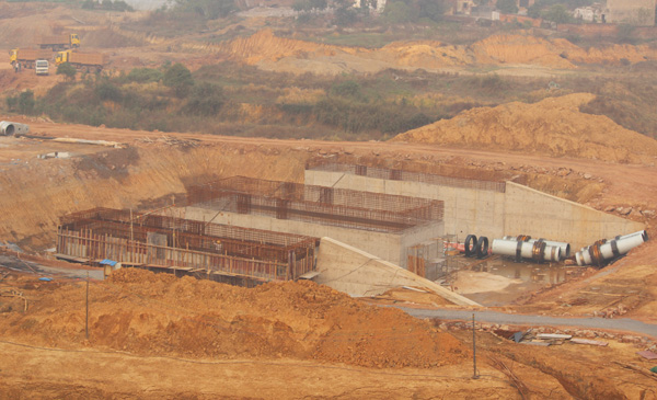 箱涵段全長720米,高8.65米,寬18米,分3孔,每孔凈高7.1米,凈寬5米,共60節,是公司成立以來完成施工的最大結構尺寸箱涵。按照傳統施工方法,每月僅能完成2~3倉砼澆筑,易受天氣影響,是該工程如期完成的關鍵節點,工期壓力極大。項目部集思廣益,開拓創新,首次在國內項目范圍使用了鋼模臺車,每月可完成6倉砼澆筑。自2013年9月3日開始,經過項目部全體施工人員的共同努力,至2014年11月23日下午完成箱涵砼工程全部砼澆筑,歷時446天,共計完成混凝土澆筑41000立方米,鋼筋制安2600噸,為公司類似項目施工積累了經驗。