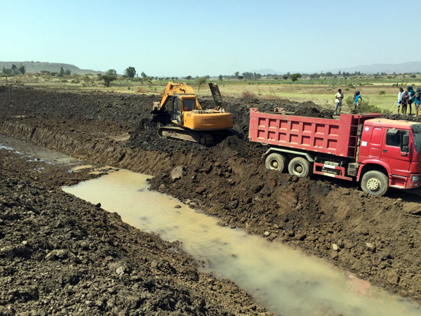 部長Motuma Mekesa一行于上午抵達項目施工現(xiàn)場,隨后對項目渠首及總渠段進行參觀考察。埃塞公司副總經理兼項目經理黃生寶向部長介紹了建設項目概況及項目施工進度,就項目設計、征地等提出了建設性意見和建議,表達了以“服務社會”為宗旨,與各方一道以最快的速度推進項目建設的積極態(tài)度。項目經理黃生寶表示,我們將秉承我公司“健行天下,堰筑大同”的精神,以最好的質量,最快的速度保證項目的實施。部長先生對我們的現(xiàn)場建設以及積極的態(tài)度表示了肯定,要求設計、征地以及業(yè)主單位積極與施工單位合作,保證項目施工質量,加快項目施工速度。同時,相信我公司能堅定信心,積極應對困難與挑戰(zhàn),在有限的時間內圓滿完成任務。