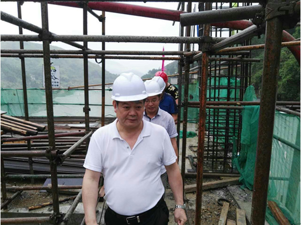 王元旦董事長察看了砼生產輸送系統、攔污墩及閘室啟閉房施工現場,聽取了工程進展情況匯報,對已完成攔污墩、閘墩加高及啟閉平臺砼外觀質量予以了高度贊揚,對項目后續施工提出了指導性的意見和建議,并要求在項目施工細節上要嚴格把關,確保工程質量。最后,王元旦董事長特別強調現場的施工安全,要求安全防護措施做到位、現場安全管理管到位,確保施工安全。