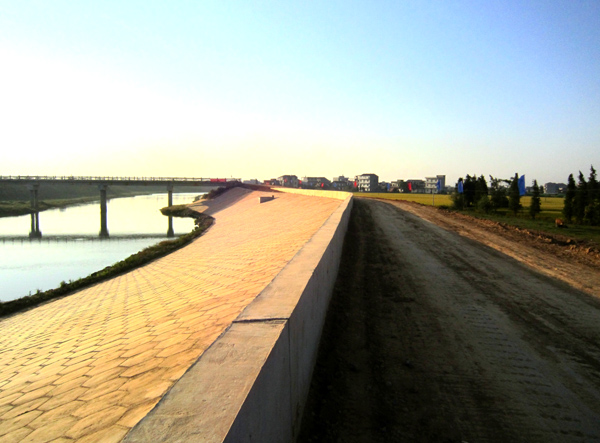 混凝土預(yù)制塊護(hù)坡與防浪墻外貌