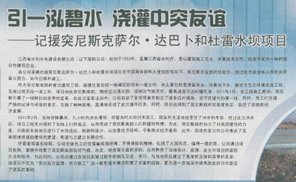由公司承建的援突尼斯克薩爾?達巴卜和杜雷水壩項目在中國商務部和大使館的領導下、突尼斯農業部的協助下,經過技術組全體人員的共同奮斗努力,如今已順利竣工。