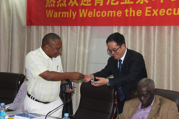 總經理徐洪良與肯尼亞茶葉公司董事秘書約翰互換名片