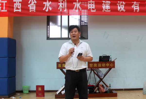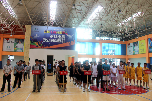 公司黨委書記、董事長總經理王元旦首先作開幕致詞。他在講話中說,為豐富公司員工的文化體育生活,公司在此舉辦員工籃球賽,這次比賽旨在增進公司各單位之間的團結和友誼,為江西水總培育集團型企業(yè)凝聚力量、注入新的活力,具有重要的紀念意義。希望參加比賽的各支球隊和隊員頑強拼搏,賽出成績,勇爭第一,同時要堅持友誼第一,比賽第二的原則。作為開展建黨90周年慶?;顒又唬ㄟ^本次比賽,共同祝愿偉大的中國共產黨和國家各項建設事業(yè)更加繁榮昌盛。黨委副書記王延軍宣布公司籃球賽開始。