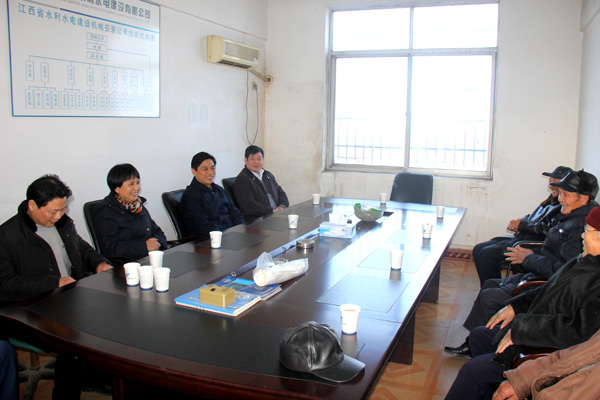 1月15日下午,省水利廳廳長孫曉山率領廳副巡視員周江紅、廳辦公室主任王純、廳人事處處長戴金華和離退休干部處處長張魯江等前往我公司南昌縣職工生活基地,看望慰問離退休老同志。公司董事長兼總經理王元旦陪同參加了慰問活動。