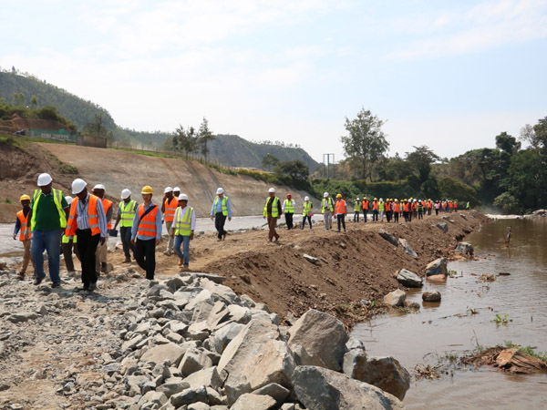 6月6日,世行官員、業(yè)主委員會(huì)、爭(zhēng)端解決委員會(huì)、監(jiān)理等項(xiàng)目相關(guān)方一行50余人來到項(xiàng)目現(xiàn)場(chǎng),對(duì)項(xiàng)目進(jìn)度及ESHS方面進(jìn)行現(xiàn)場(chǎng)檢查。檢查團(tuán)先后來到大壩圍堰區(qū)、取水口、廠房、支洞、廠房住宅區(qū)和項(xiàng)目營地進(jìn)行檢查。世行對(duì)項(xiàng)目總體進(jìn)度表示滿意,同時(shí),希望承包商繼續(xù)加快進(jìn)度,特別針對(duì)關(guān)鍵節(jié)點(diǎn)進(jìn)行資源合理配置,爭(zhēng)取項(xiàng)目早日建成發(fā)電。
