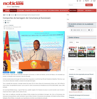 經(jīng)過一千多天夜以繼日的辛勤努力,集設(shè)計、制造、施工于一體的莫桑比克Corumana大壩項目終于迎來了竣工的喜悅時刻。10月29日,莫桑比克總統(tǒng)紐西閣下親臨現(xiàn)場,為項目揭牌剪彩。