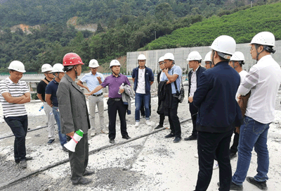 第二站,學(xué)習(xí)團來到新屯水庫,跟隨著項目管理團隊參觀了導(dǎo)流隧洞、上壩公路、主壩施工區(qū)、進(jìn)水塔、溢洪道、沉降觀測室、料場、復(fù)建公路等施工區(qū)域,隨后由項目副經(jīng)理向國華、測量負(fù)責(zé)人鄒國群及質(zhì)量負(fù)責(zé)人廖軼先分別就各自負(fù)責(zé)的工作內(nèi)容向?qū)W員們進(jìn)行了現(xiàn)場授課。通過現(xiàn)場學(xué)習(xí),學(xué)員們了解到該工程七大特點。